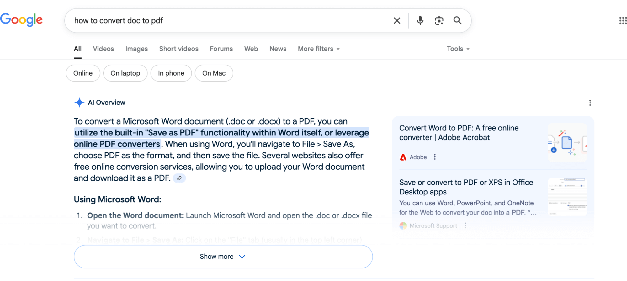 AI Overviews can’t obviously convert any files themselves. However, the threat level can’t be called pure green: Google already gives users hints on such tools and even offers step-by-step instructions that don’t require visiting any sites: