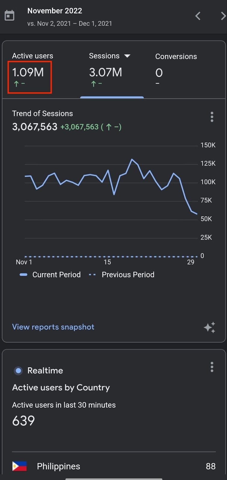 He started with a small website devoted to anime in 2016 and in a year the visitors flow started growing exponentially. He says: “In 2022, I was already getting 1 million visitors daily!” And now take a look at his metrics of November-December: