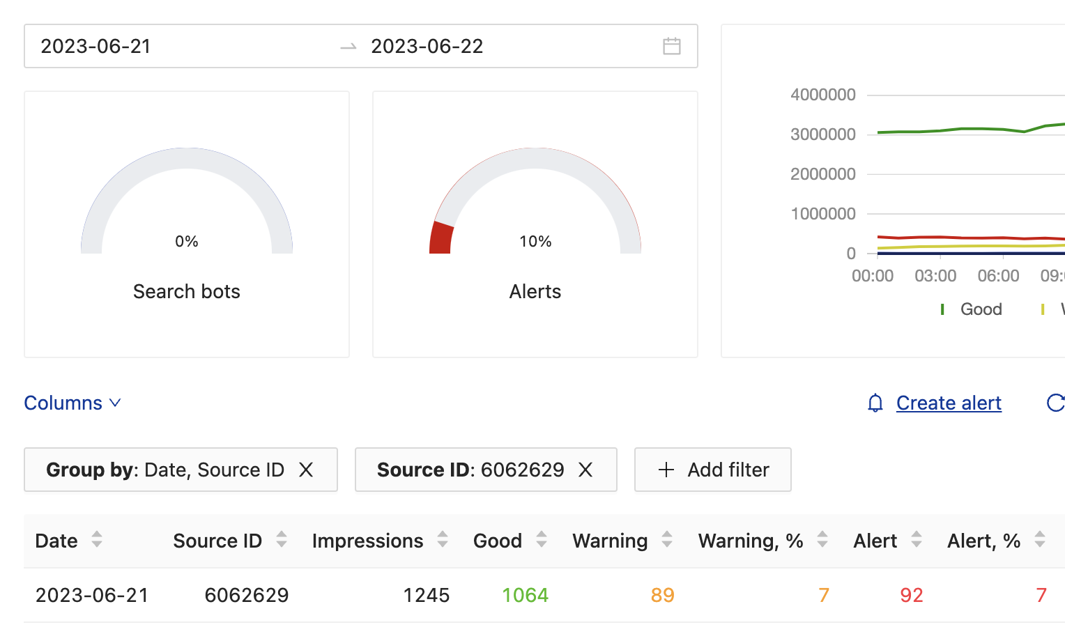 As you can see on the screenshots below, 90% of the traffic was in the green high-quality area — so our publisher was pretty confident in the users he brought: