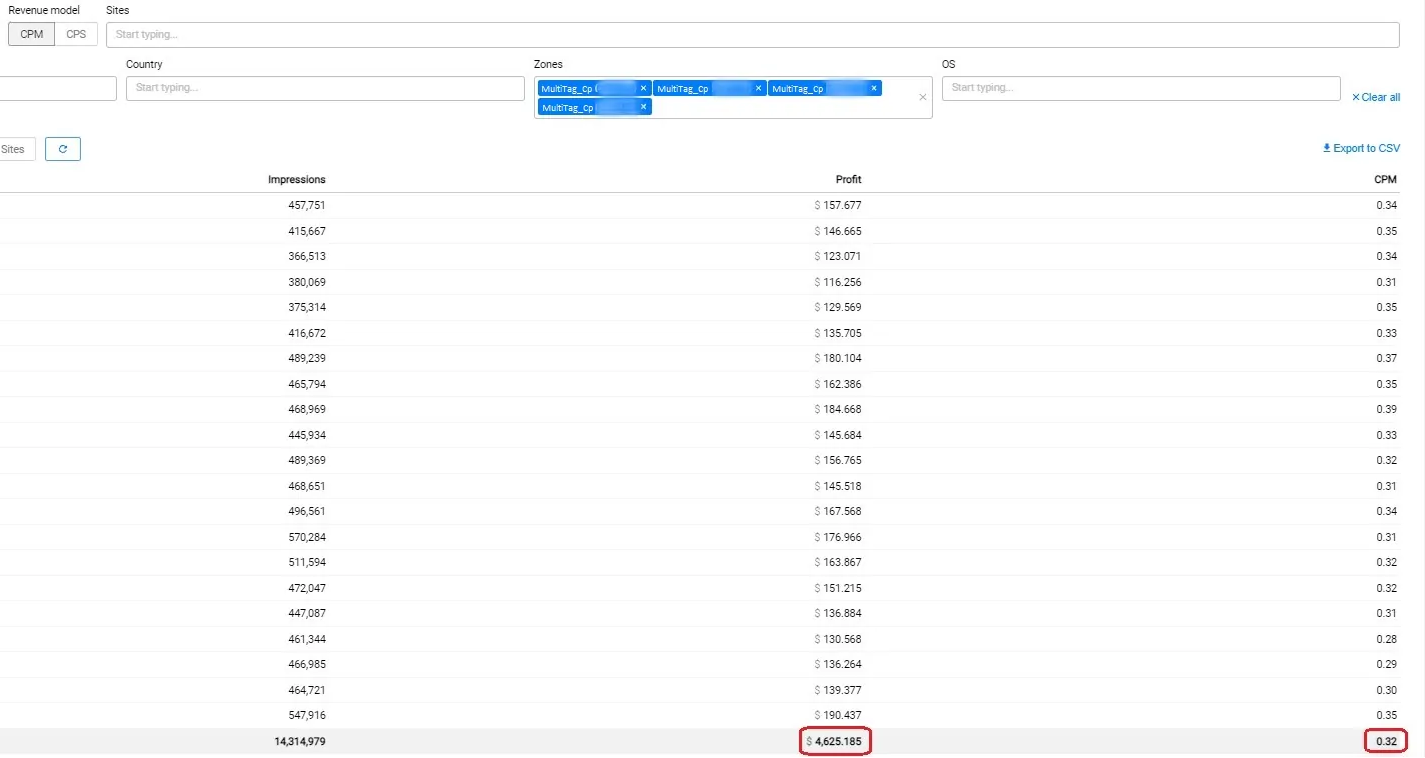 The tag had full ad coverage across all devices, OS, and GEOs, while automatically optimizing rates to reach maximum profit.