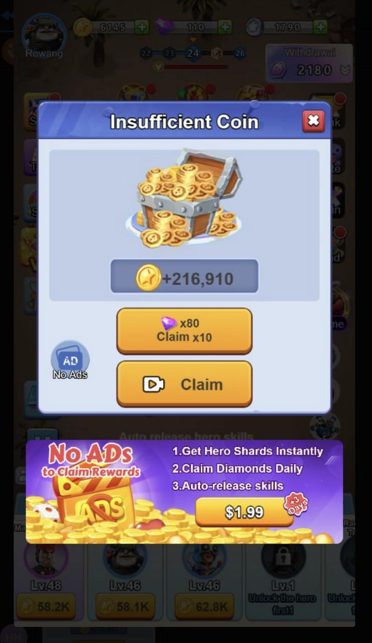 • The LTV of free users expanded. About 80% of users never make purchases, but thanks to ads, they can keep playing longer — earning free items simply by watching short ads. In the mid and late stages of the game, they’re gradually offered paid features: time-limited skins, monthly passes, and growth funds. So, ads gently guide free players toward spending.