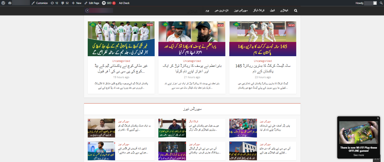 My website covers cricket news in the Urdu language, and I highlight the Pakistan cricket team, Pakistan Super League, Indian Premier League, and the Indian Cricket team. Here is how it looks: