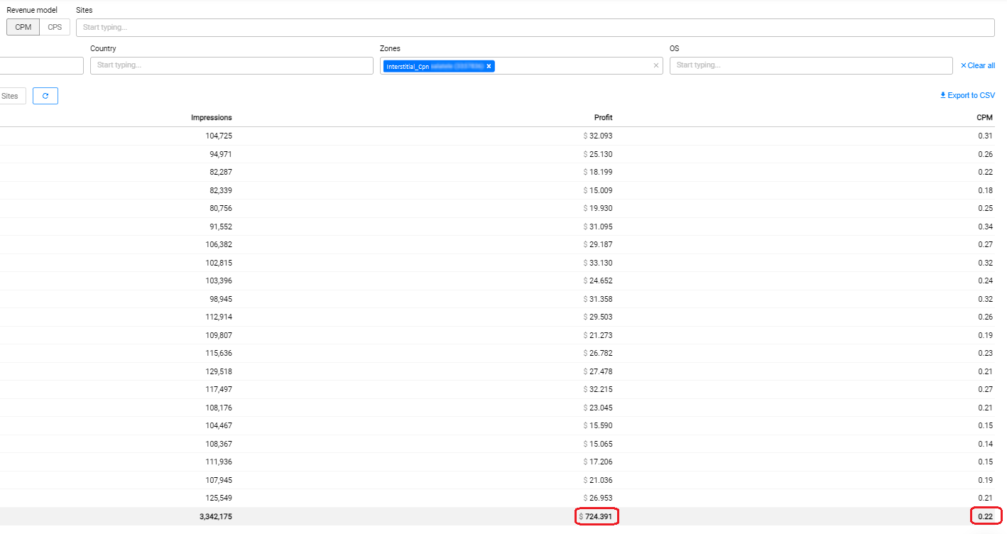 The In-Page Push results achieved similar profit to Interstitials and a solid CPM: