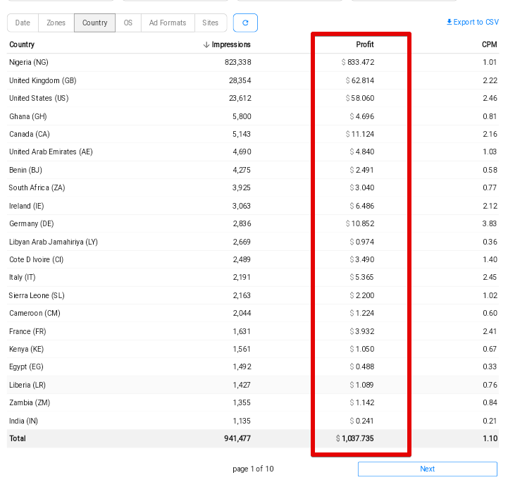 According to this publisher, “90% of the traffic was from African GEOs, like Ghana, South Africa, Nigeria, and other major nations. If you get constant traffic from these regions, you’ll definitely be able to hit the $10 CPM goal,” says the publisher.