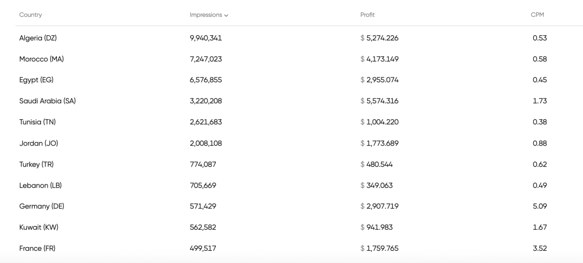 Here is also his GEO breakdown and daily earnings: